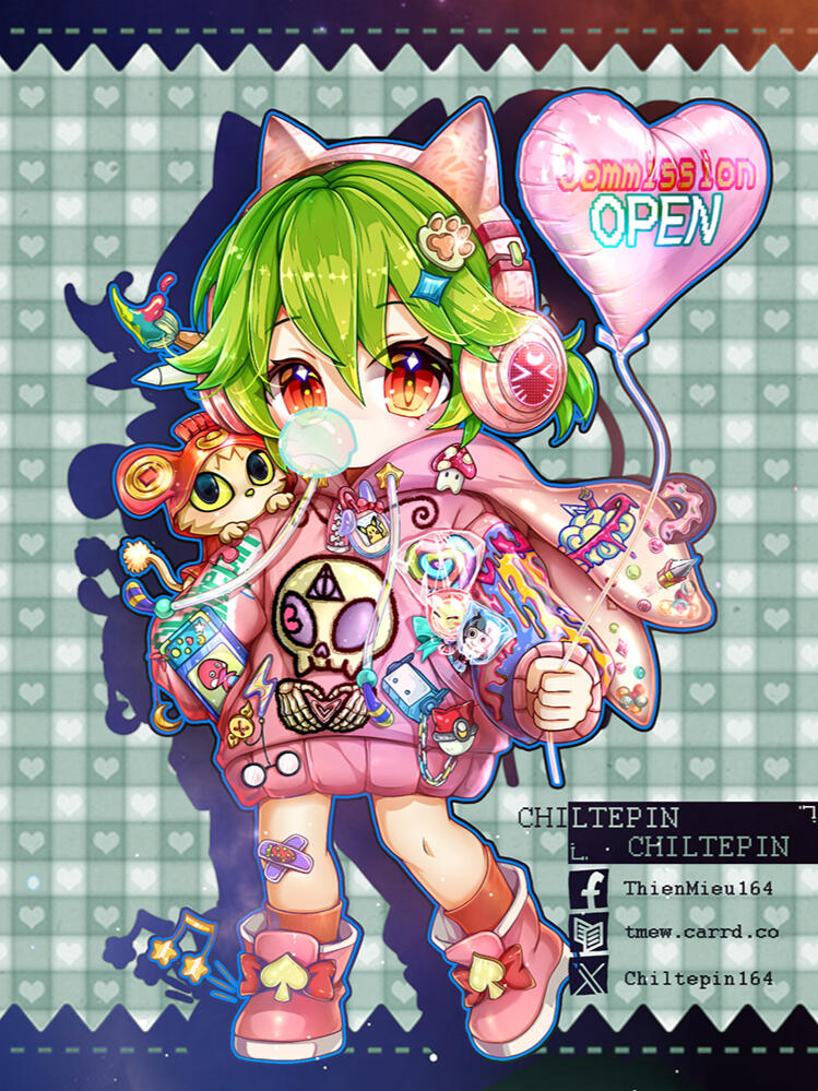 My nickname is Tmew ( or Chiltepin), I'm an 2D Artist.Drawing and enjoying beauty is my life. I also love cats because they are so cute.Thank you for visiting my website, hope you enjoy it.Thank you for your interest and love, I hope to continue to have beautiful works and my feelings to share everywhere.Have a great day, love you!